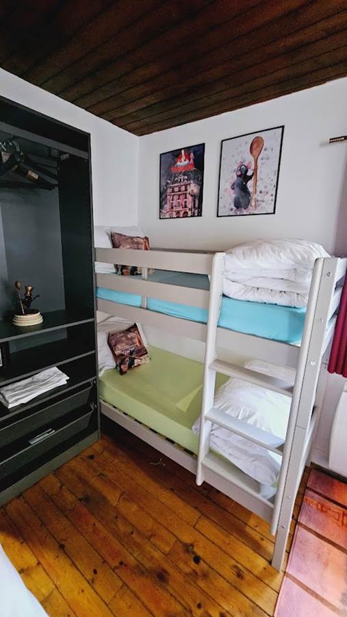 L' endroit idéal pour les visiteurs de Disneyland qui souhaitent vivre une expérience unique et authentique en séjournant dans un décor du célèbre film. Plongez dans l'univers magique du film d'animation Ratatouille en découvrant notre charmante et chaleureuse chambre décorée avec soin et originalité. Profitez d'un séjour enchanteur pour toute la famille, à quelques minutes en voiture de Disneyland Paris et de la Vallée Village. Vous bénéficierez d'un petit-déjeuner continental servi en chambre qui se compose d'une sélection de pains et viennoiseries frais, accompagné de beurre, confitures et miel. Des céréales, des yaourts ou des fruits peuvent être également proposés, ainsi que jus de fruit frais et des boissons chaudes telles que le café, thé ou chocolat chaud. Dormez près de la magie... A bientôt ! La chambre de Ratatouille